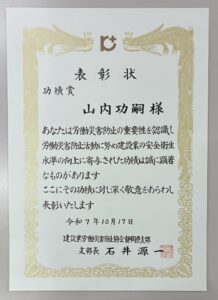 令和7年10月17日 建設業労働災害防止協会より功績賞受賞