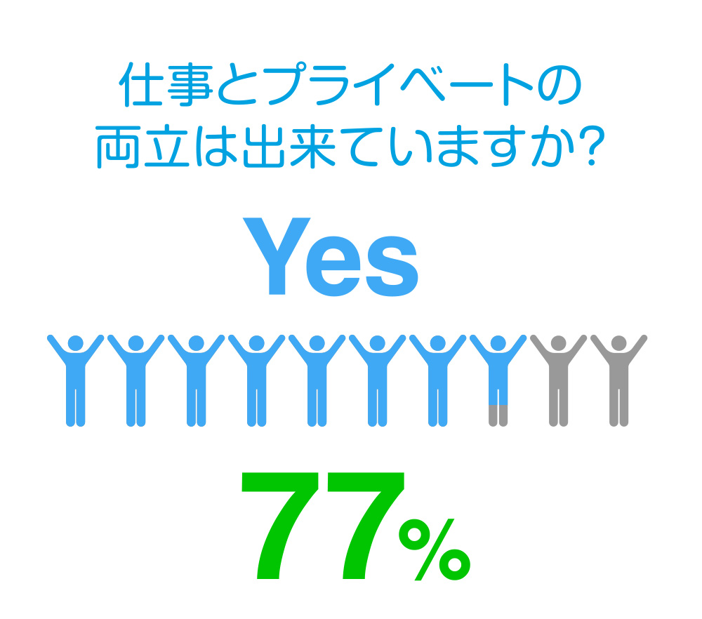時間内で仕事を終わらせオン・オフの切り替えを意識し、仕事の効率化・プライベートの充実ができていると思います。 有給休暇が取りやすく、休日はゆっくり過ごせています。
