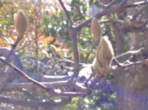 白木蓮の蕾が割れ始めました。開花も近く、楽しみです。