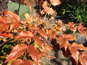 柊南天も葉の色が変わり、蕾も膨らんで来ました。じきに黄色い可愛い花が
