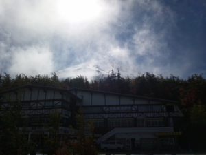 建物の中に入ったりしているうちに、だんだん頂上が晴れてきてシャッターチャンス!