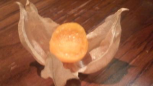 ほおずきトマトと名付けられた食用鬼灯は、外側の皮は枯れたように葉脈だけの姿です