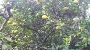 真っ青な夏みかんがたわわになっています。じきに黄色く色付き始めますが、