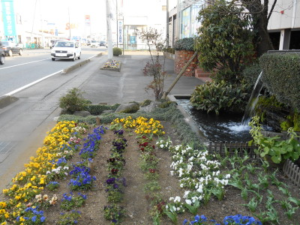 そうこうしていると、3月に入り各所で早咲きの桜もチラホラ見かける様になりましたが、弊社の国道沿いの花壇が現在丁度見頃となりました。