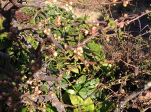 庭の木瓜(ぼけ)の蕾はまだ開いていませんが、梅と桜を繋ぐ杏の蕾は既に